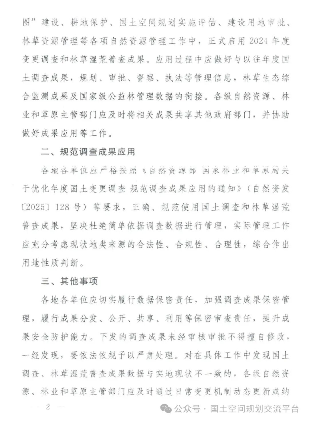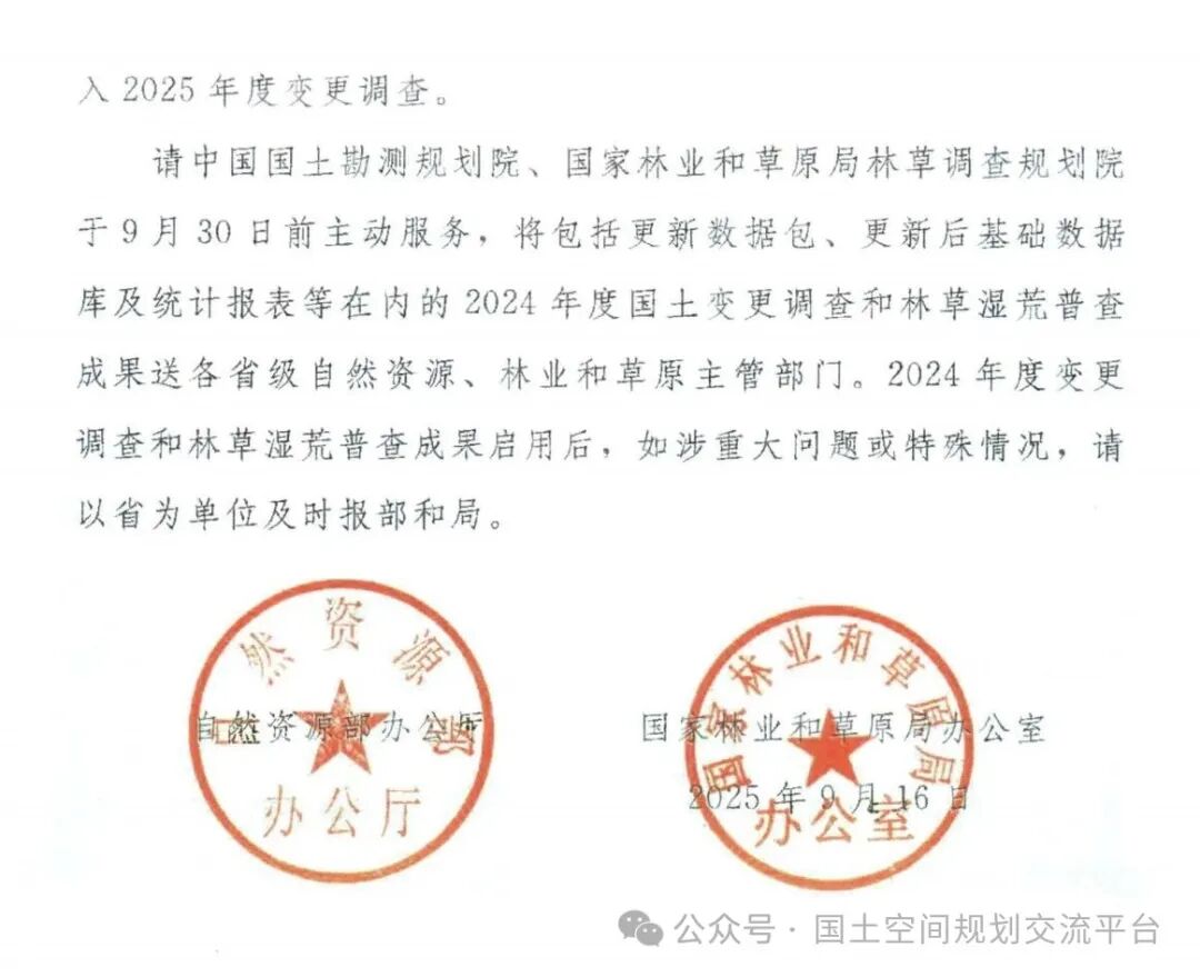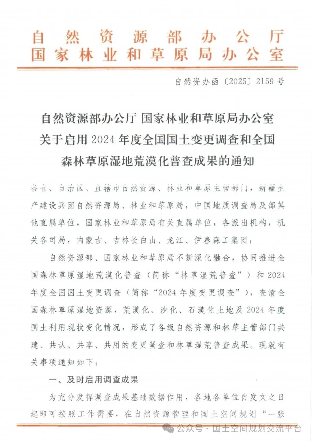 自然資源部辦公廳國家林業(yè)和草原局辦公室關(guān)于啟用2024年度全國國土變更調(diào)查和全國森林草原濕地荒漠化普查成果的通知